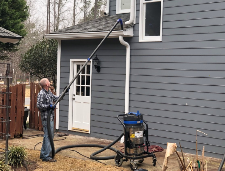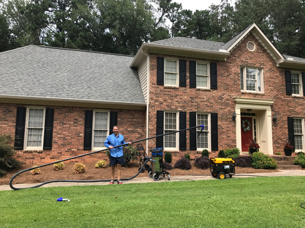 Better yet, all of the debris that will be sucked out from your gutters will then go right down into the barrel of our vacuum, allowing for quick & easy disposal.